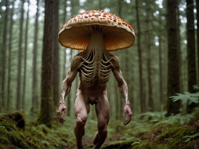 成歩岳の山麓、樹海の中でキノコ人間が目撃されたという。